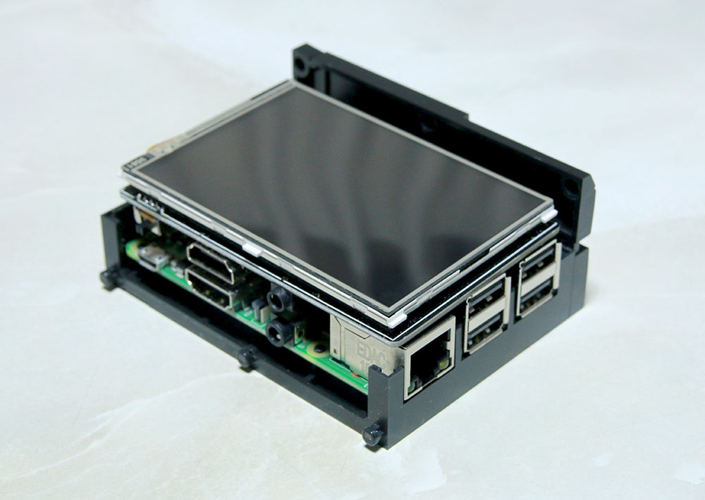 Raspberry3 MODEL B+ の上に3.5インチLCDが載っています。