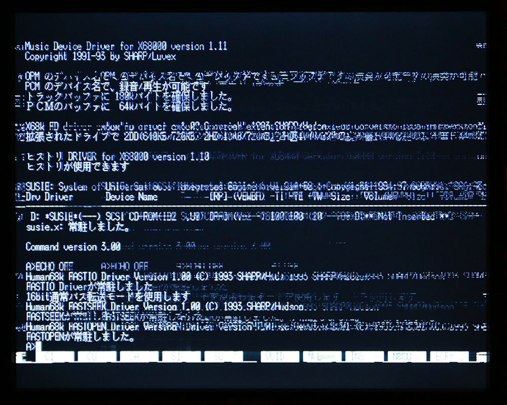 とりあえずの対応で、X68000からの読み込み時点でメモリの1ラインおきに入れるようにして、それを表示させました。以下はその画像で、画面いっぱいにはなりましたが、ライン間に黒の隙間が見えます。