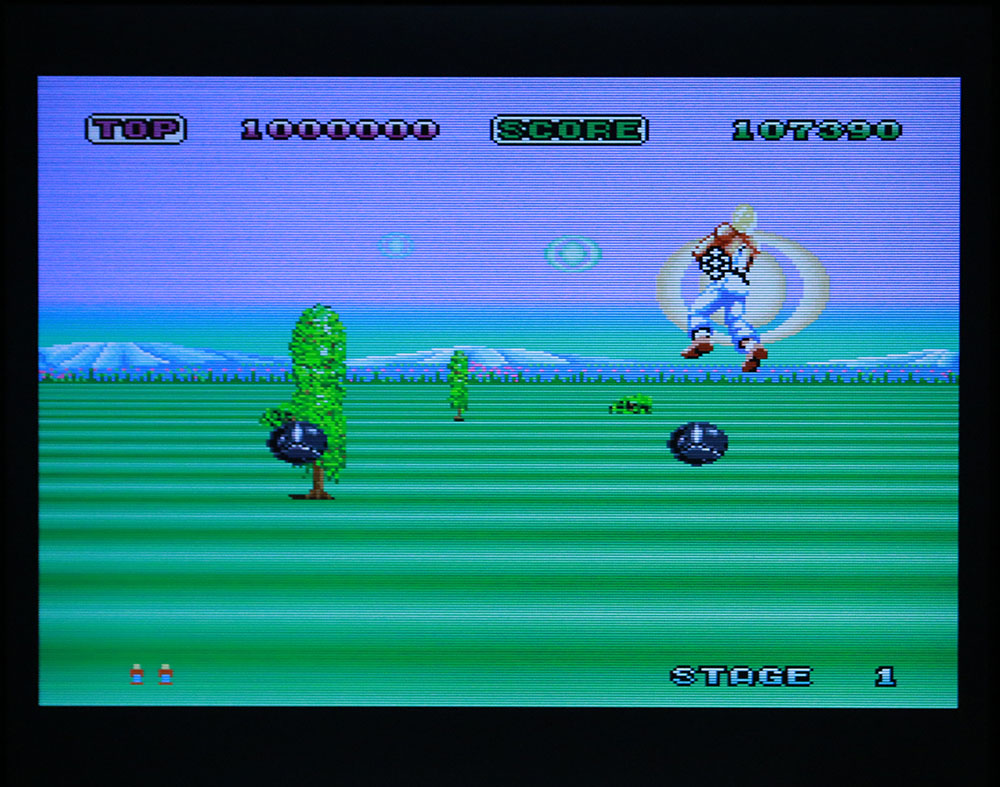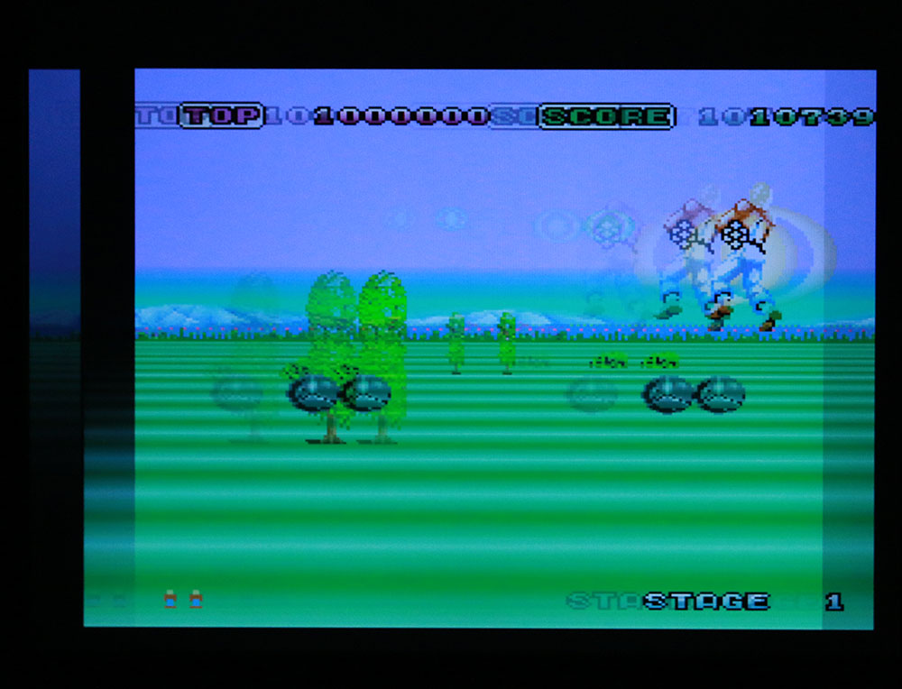 スペースハリアのゲーム画像がはげしく横ぶれしています。同期ずれではありません。