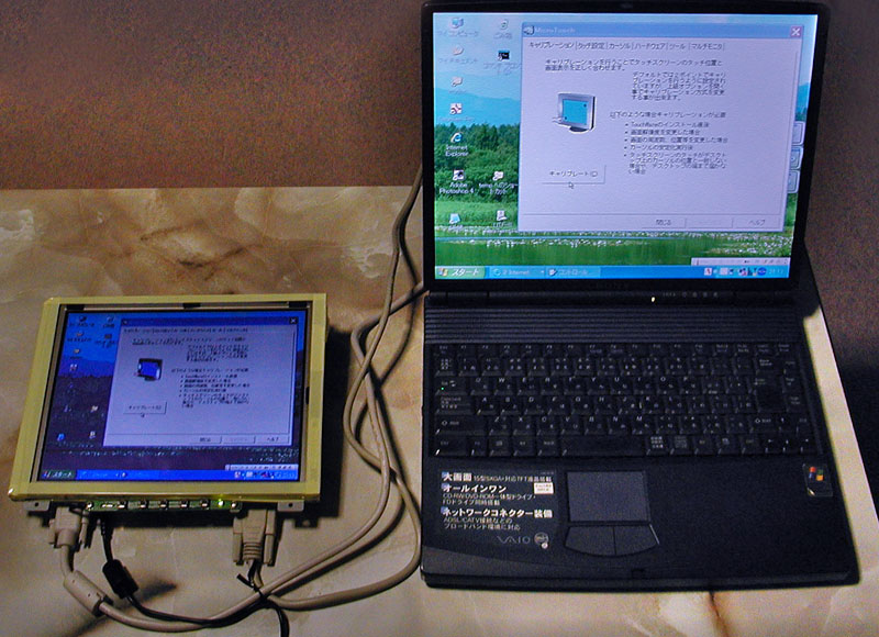 まずは、Windowsノートで動作試験。表示はもちろん、RS232C出力のタッチパネルも無事動作しました(タッチパネルのドライバは以下からダウンロード)。