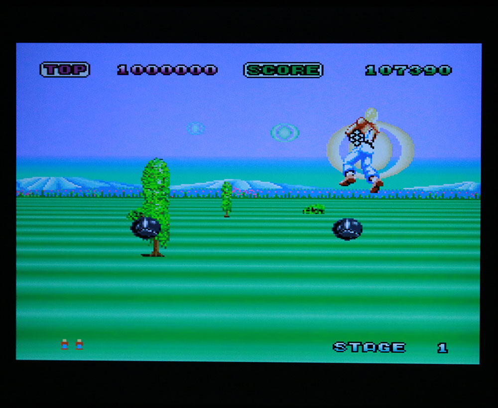 スペースハリアのゲーム画像がはげしく横ぶれしています。同期ずれではありません。